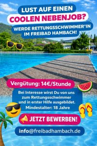 Das Hambacher Freibad sucht für die Sommersaison noch Rettungsschwimmer. Mehr erfahrt ihr auch von kim.heinz@freibadhambach.de